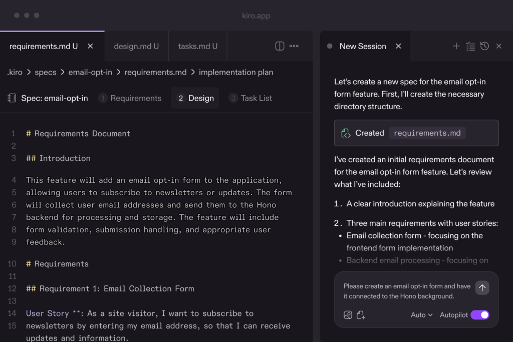 최근 Kiro가 주목받는 이유는 AI 기반으로 IDE를 만들었을 뿐만 아니라 스펙 주도 개발(Spec Driven Development)을 구현할 수 있기 때문입니다.