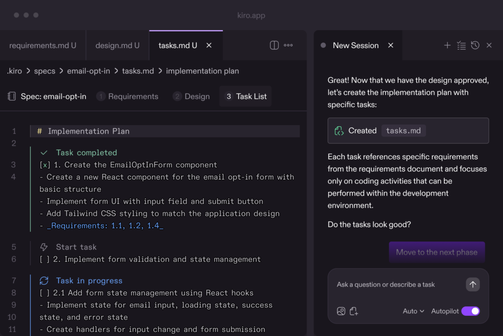 반면 Kiro는 체계적인 개발 조직과 엔터프라이즈 환경에 최적화되어 있습니다. 여러 명의 개발자가 하나의 서비스를 함께 만들어가는 협업 구조에서는 개인의 속도보다 팀 전체의 일관성이 더 중요합니다. 보안 규정을 준수해야 하고, 요구사항 변경이 잦으며, 팀별 표준화가 중요한 기업이라면 Kiro가 제공하는 스펙 기반 개발 방식이 훨씬 효과적입니다.