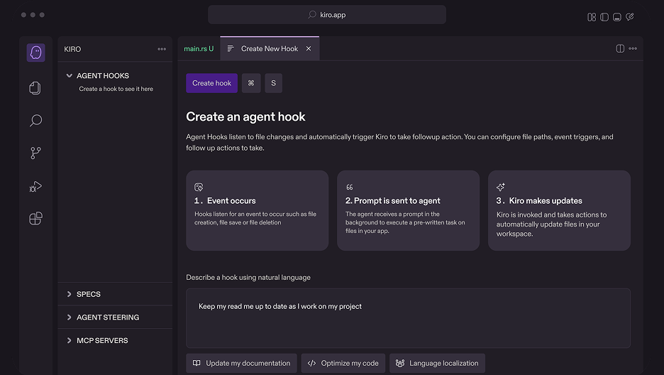 Kiro의 핵심 기능 Agent Hook