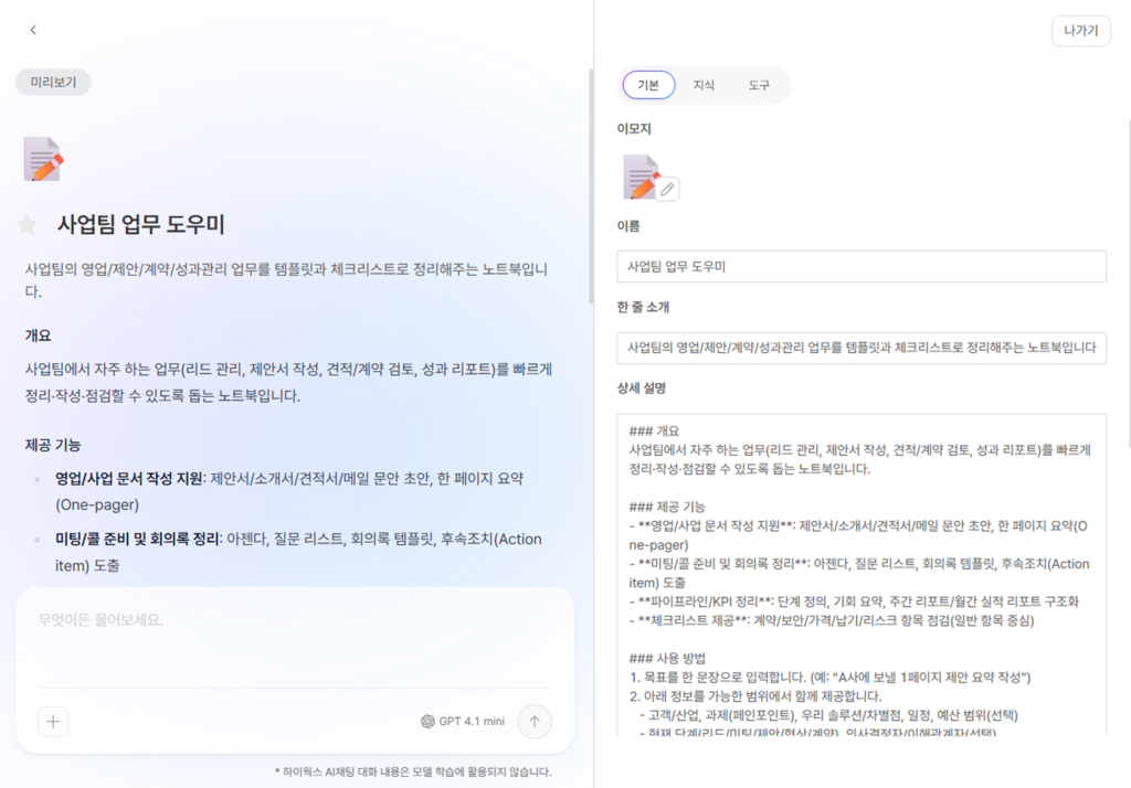 사업팀 업무 흐름 속 AI채팅 활용법